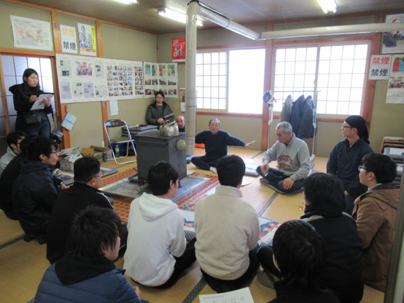 全国からの10人の若者に増川地区のなまはげ説明 読売新聞阿部記者取材 左端
