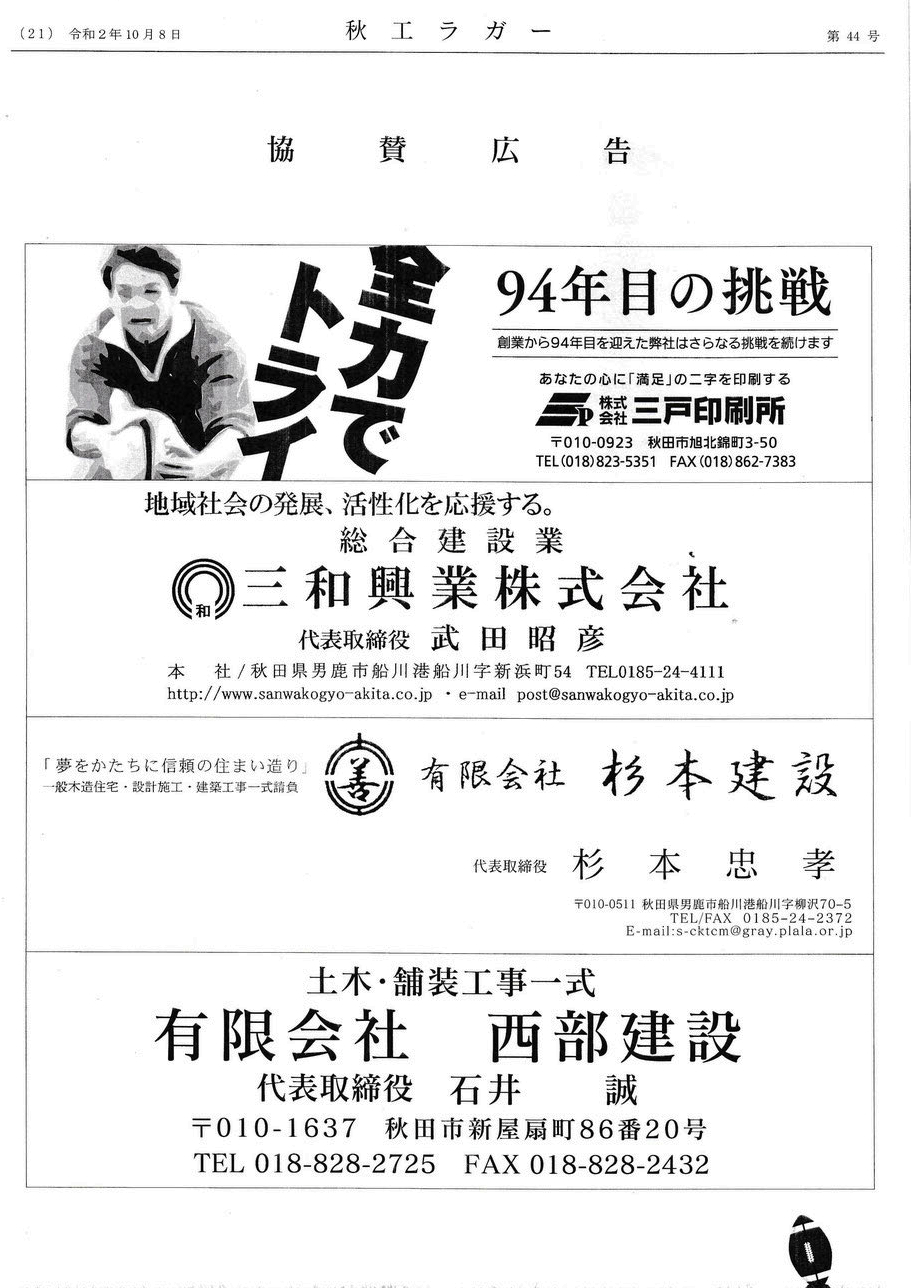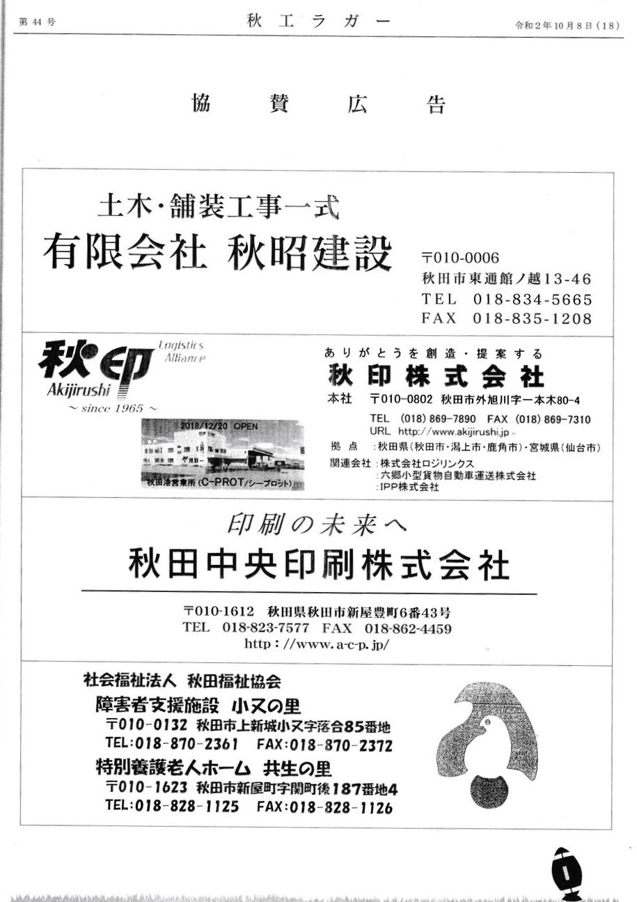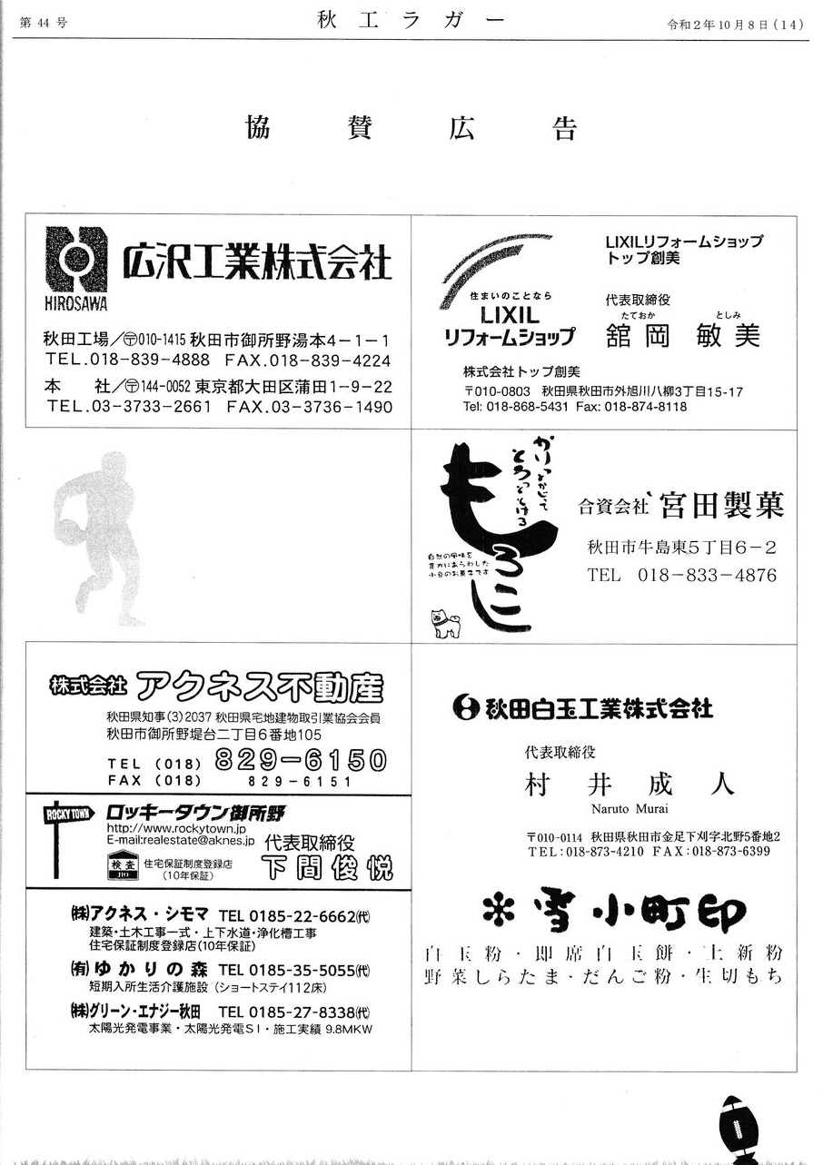 「秋工ラクビー後援会の会報誌 秋工ラガー(第44号)発行 」を紹介させていただきます。
