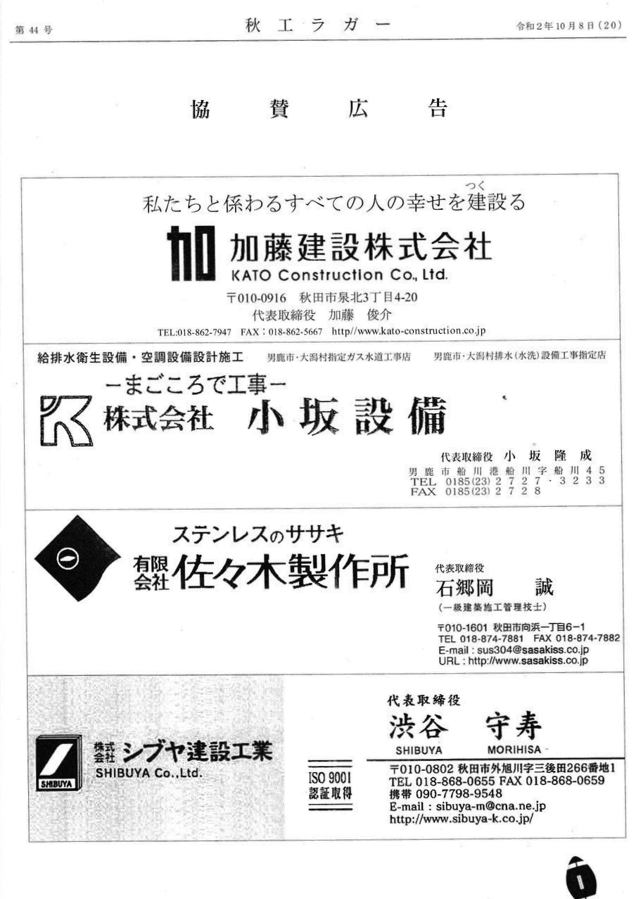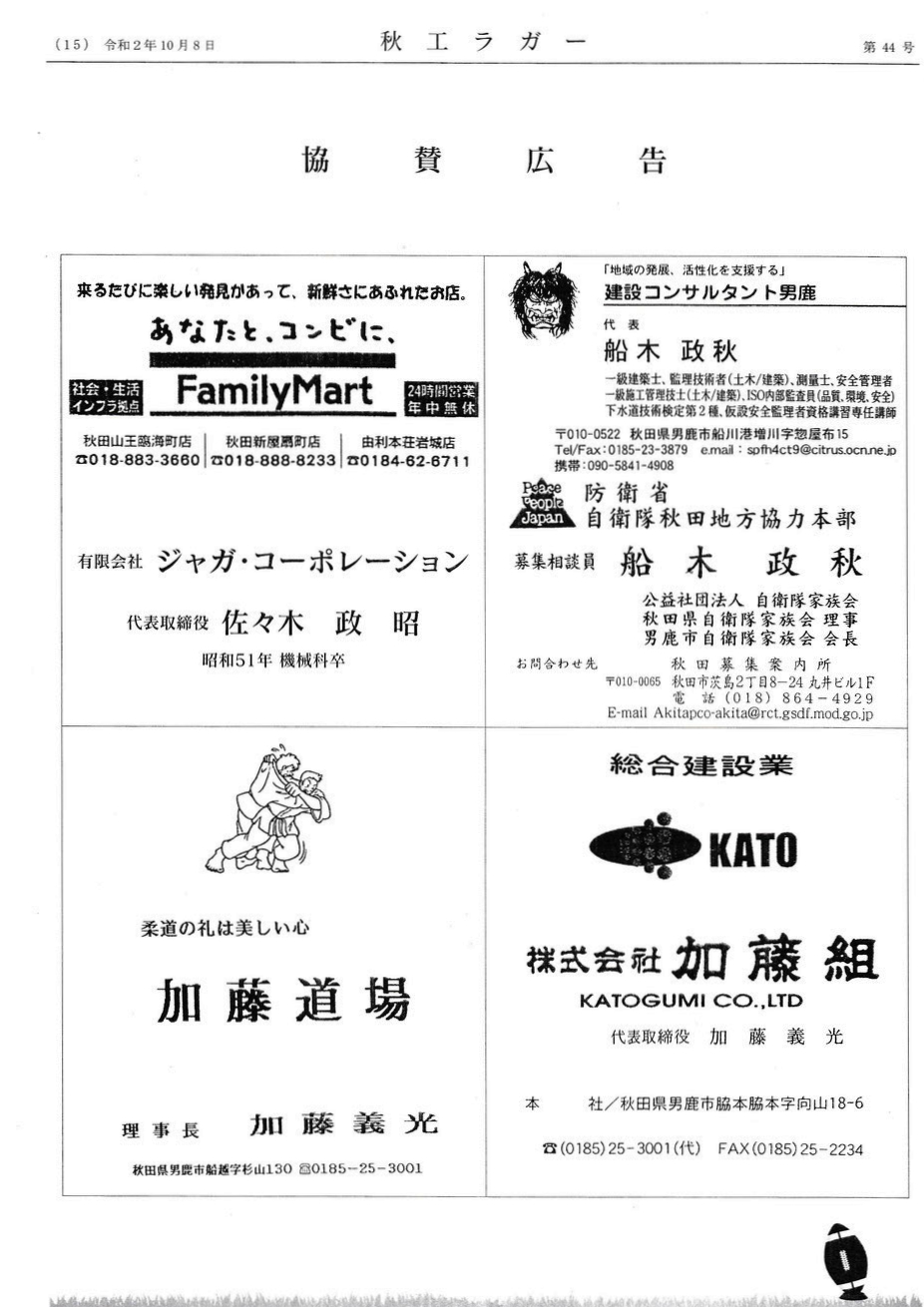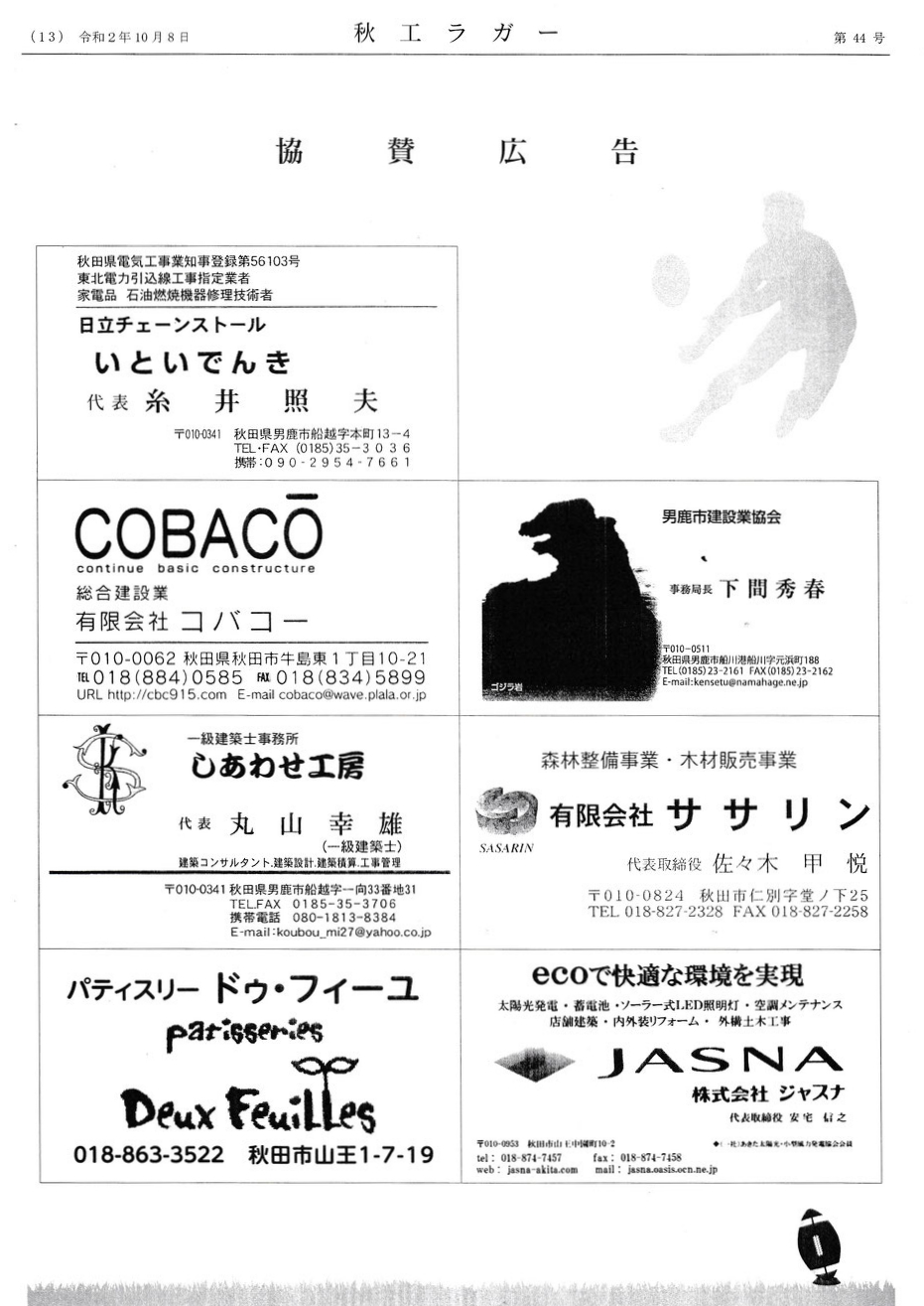 「秋工ラクビー後援会の会報誌 秋工ラガー(第44号)発行 」を紹介させていただきます。