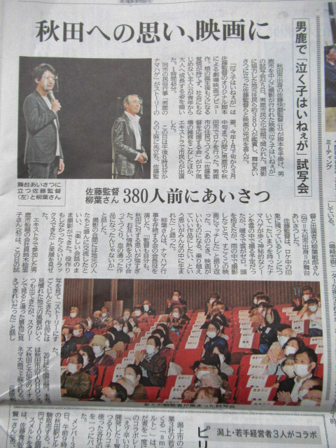 「「泣く子はいねぇが」男鹿市試写会 柳葉敏郎さん「秋田への思い強すぎた」 秋工OB活躍 」を紹介させていただきます。