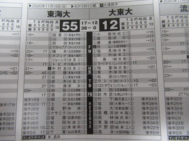 東海大学 55 – 12 大東大
