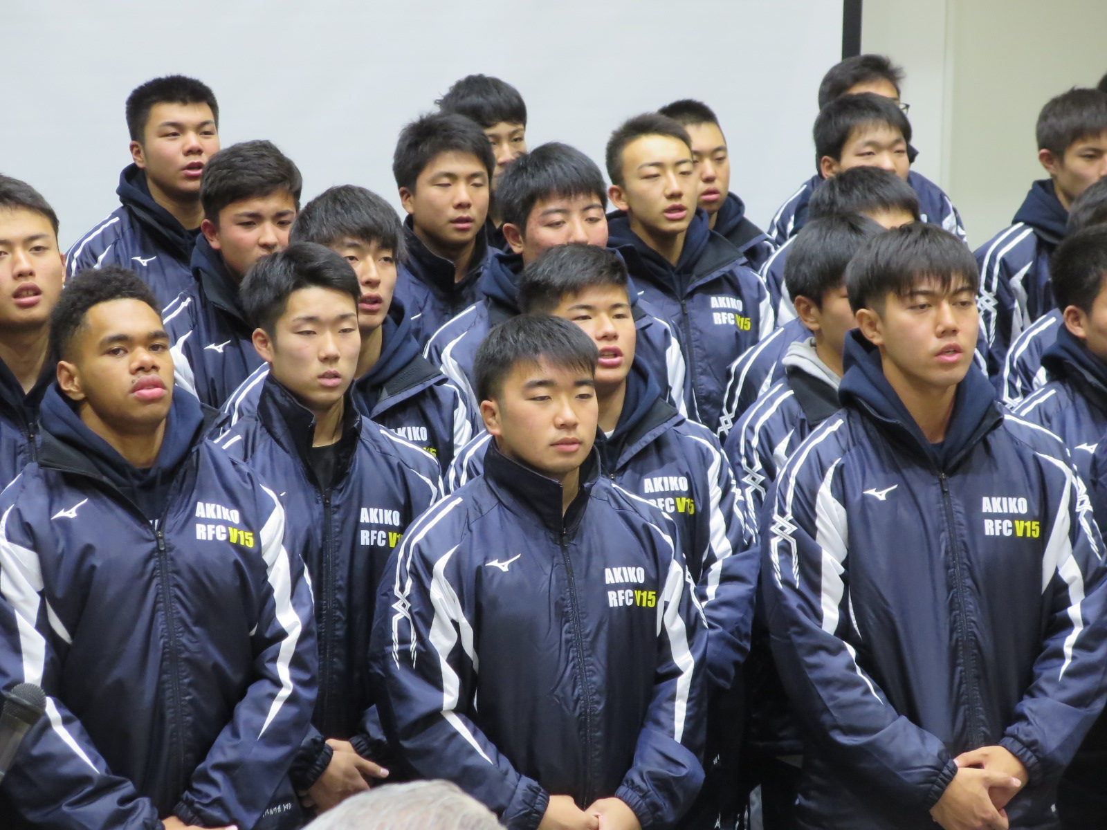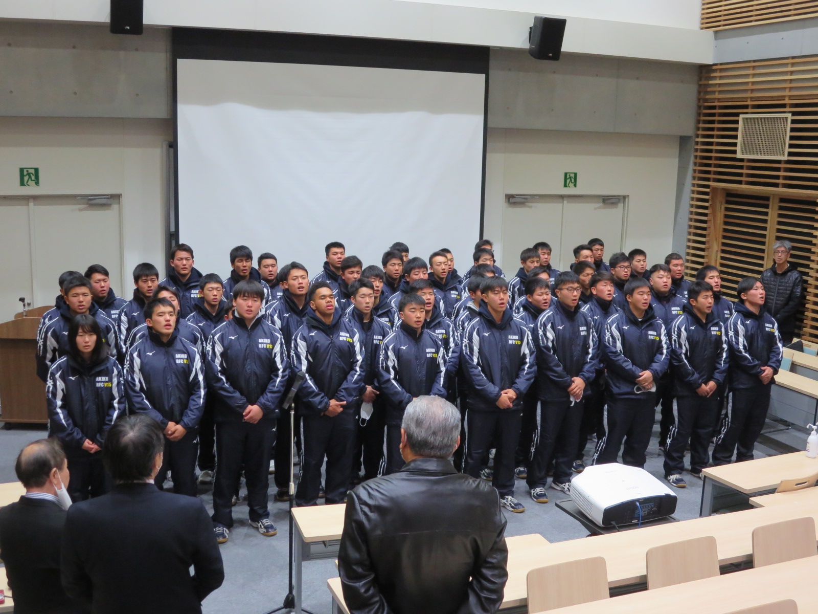 第100回全国高校ラグビー大会へ秋田県代表として出場する秋田工業ラグビー部員は12月22日(火)19:30より壮行会が学校の会議室で行われました。