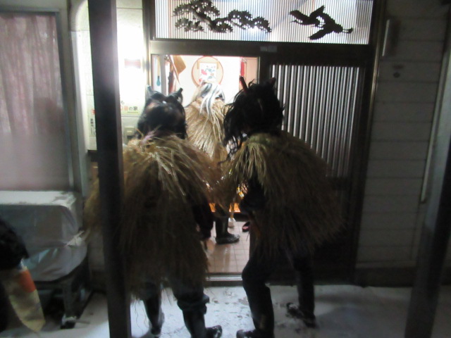12 玄関の内と外でなまはげ
