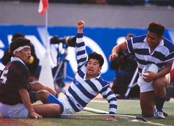1991年1月6日。国立競技場。全国大学選手権決勝。対早稲田16-13。3点差そこに 数百時間の練習の努力は凝縮した。吉田義人の逆転トライで明治は全国大学日本一になった。