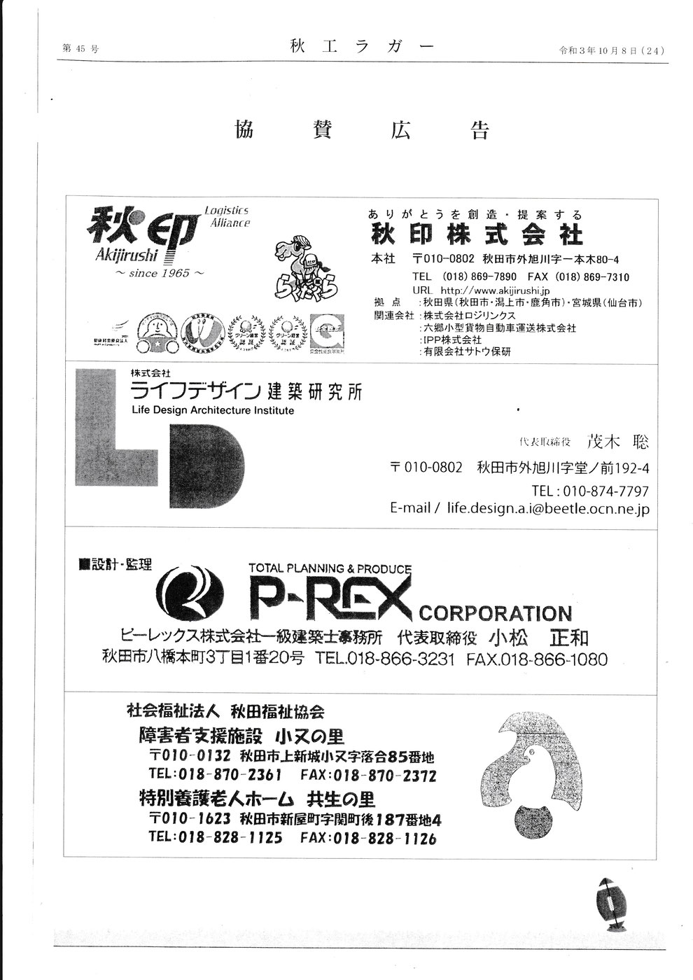 「秋工ラクビー後援会の会報誌 秋工ラガー(第45号)発行 」を紹介させていただきます。