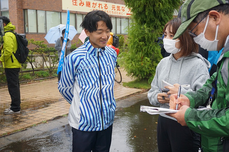 大野聖登選手3区(3年):5~7kmあたりでたるんでしまった。残り1kmでギアを入れ直して 快調に飛ばして後続を引き離した。