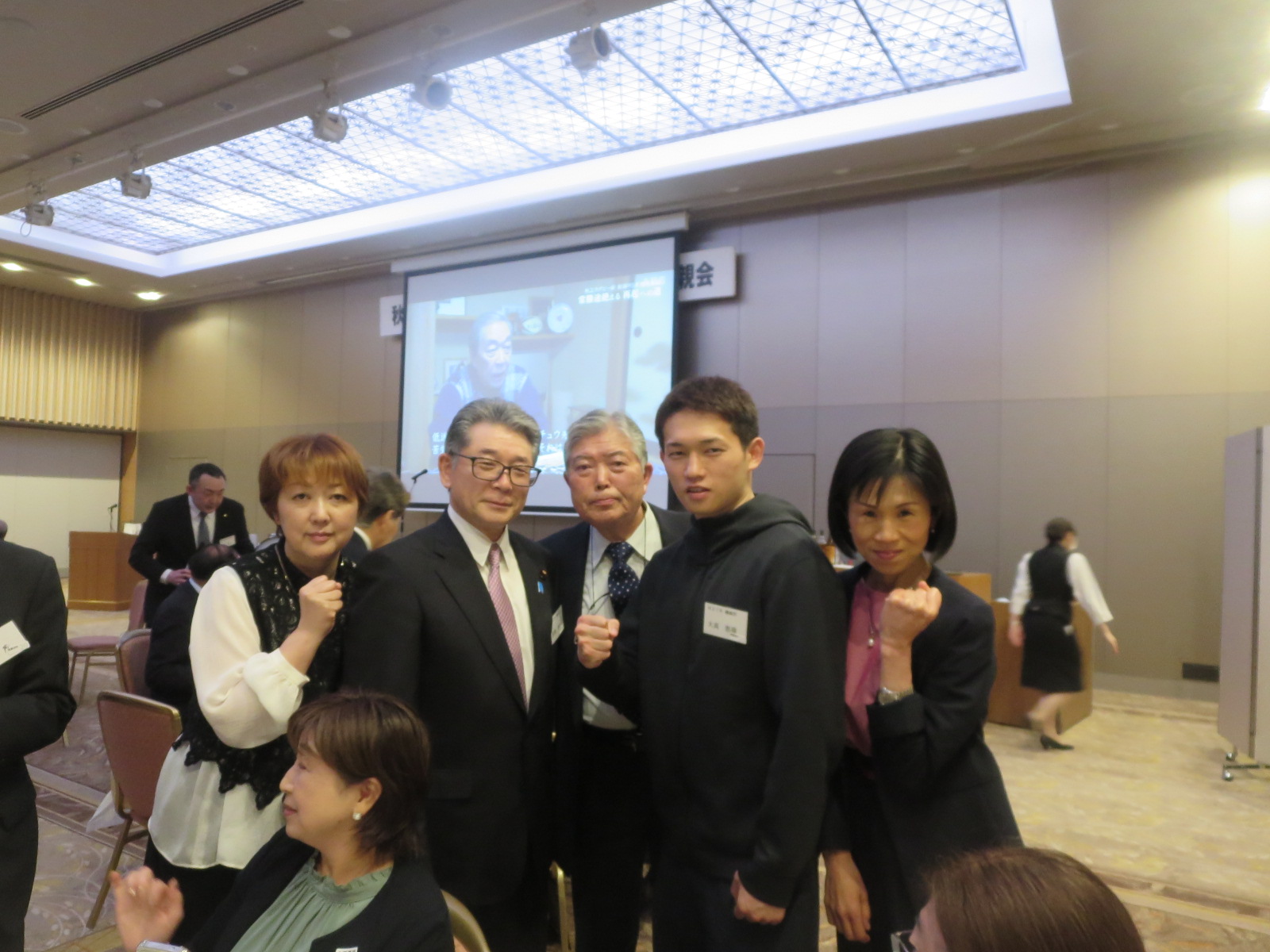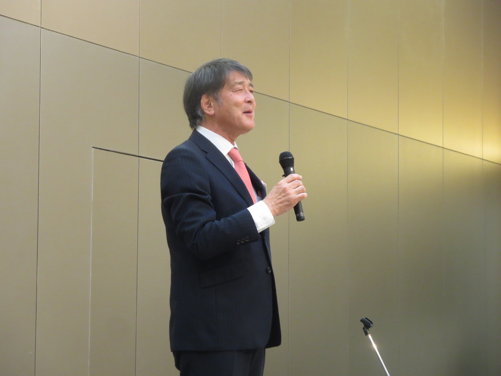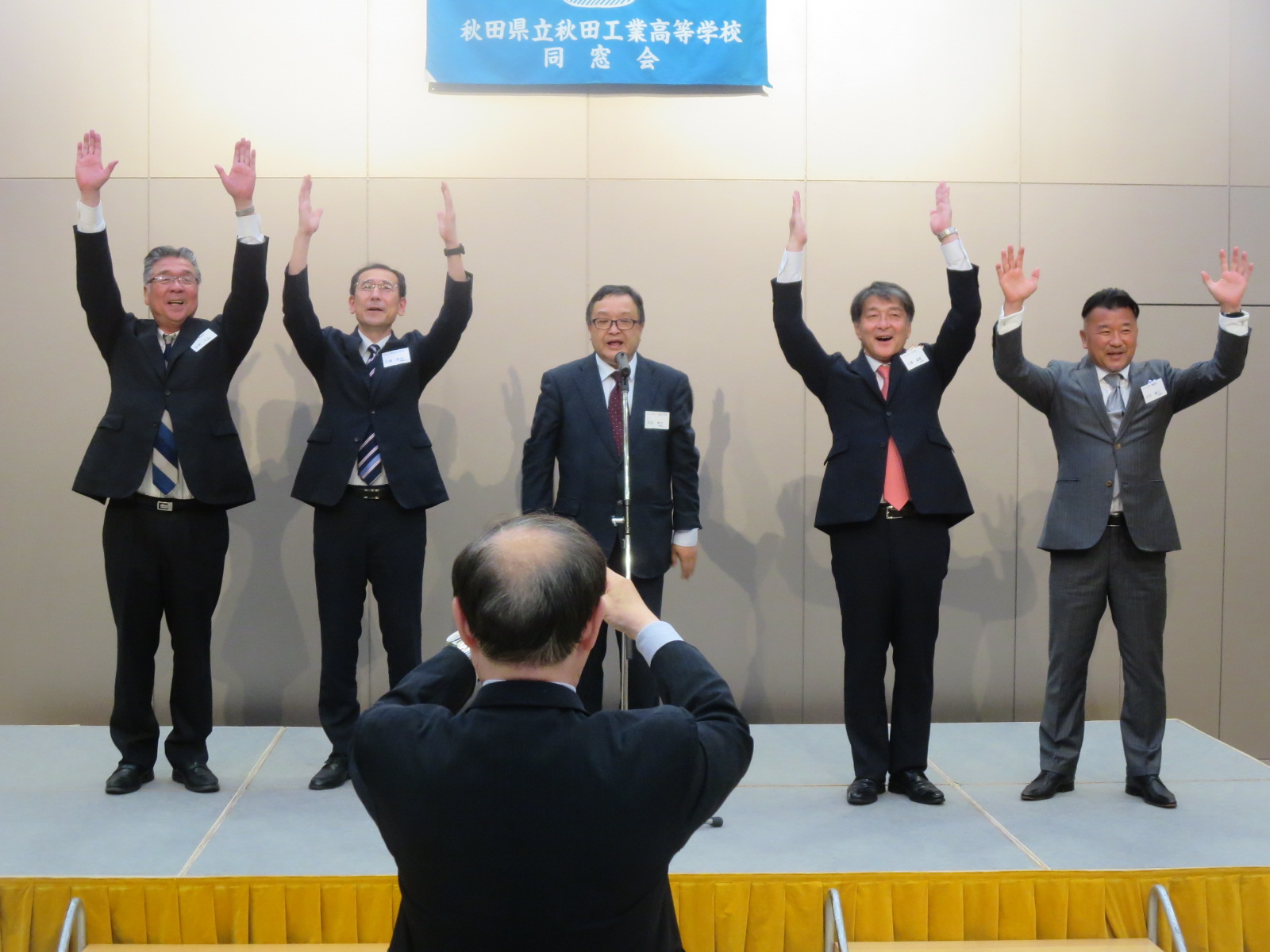懇親会ではラグビー部OB会の強化部長として今年2月から月に10日間ほど東京から秋工ラグビー部を指導している吉田義人氏(秋工キャプテン高校全国優勝-明治大キャプテン大学全国優勝)の講演や、飛び入り同窓生の民謡、全員での応援歌・校歌の合唱、抽選会、ラグビー部OBがステージ上がり、全員でラグビー部歌の斉唱、当番年度のたすき引継ぎなど、今後の母校発展の決起集会とも思われる同窓会であった。