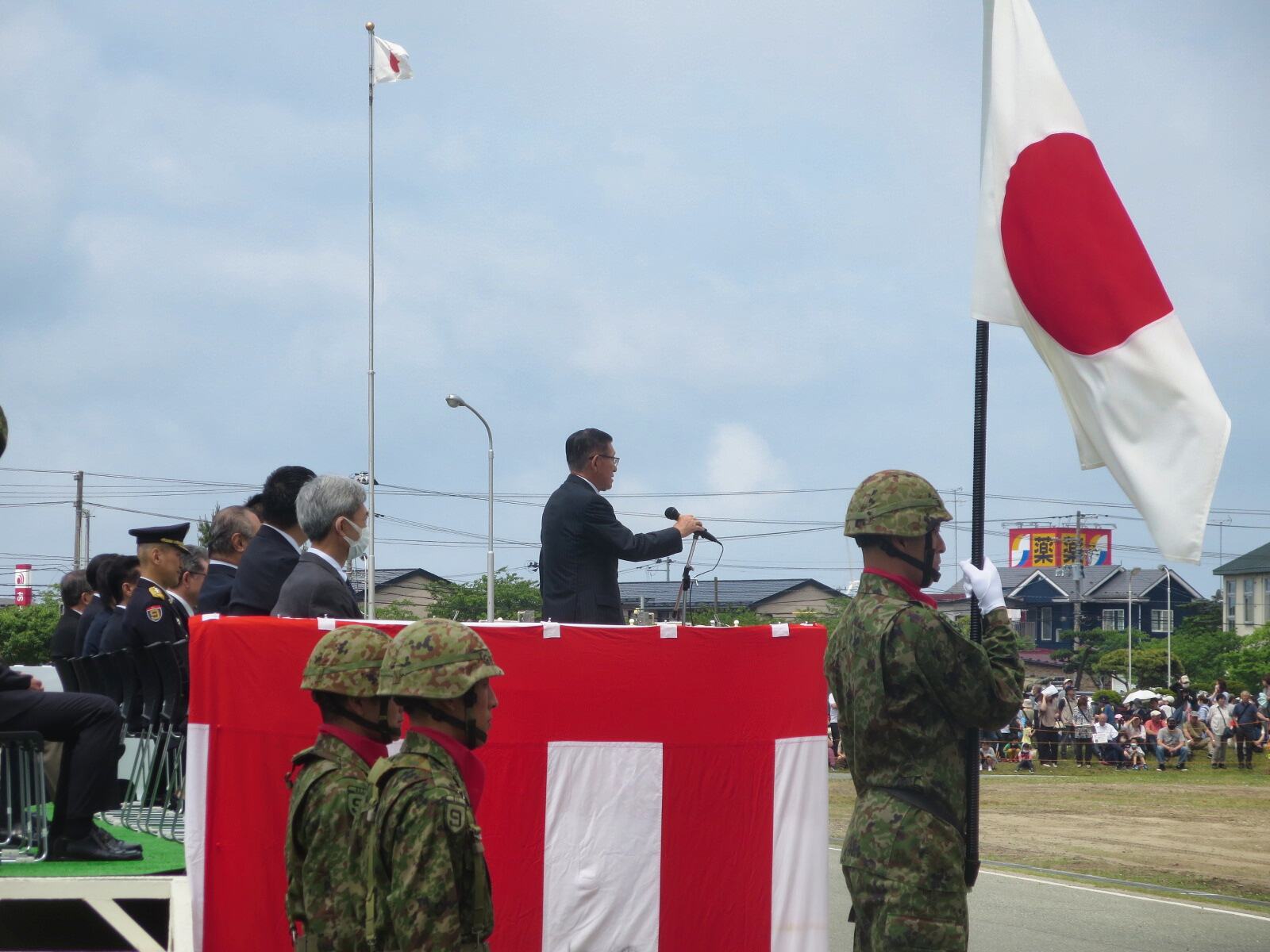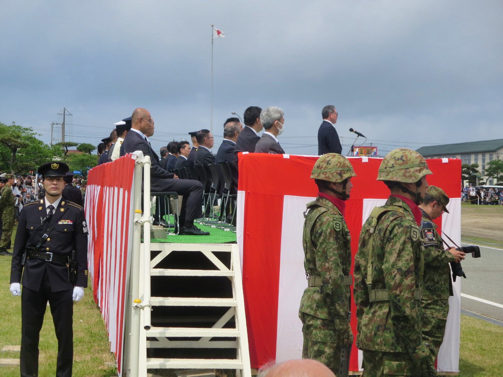 妹尾研作基地司令:新型コロナウイルスの流行やロシアのウクライナ侵攻で国際社会が緊張の度を深めているとし、 隊員に「与えられた任務の重さに思いを致し、その使命を全うできるよう、日々精進努力してもらいたい。