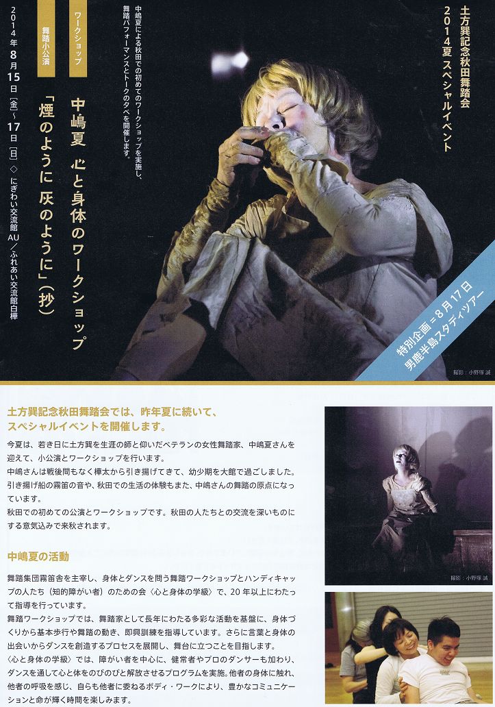 土方巽(秋工出身)記念秋田舞踏会の8月のイベントの紹介をさせていただきます。