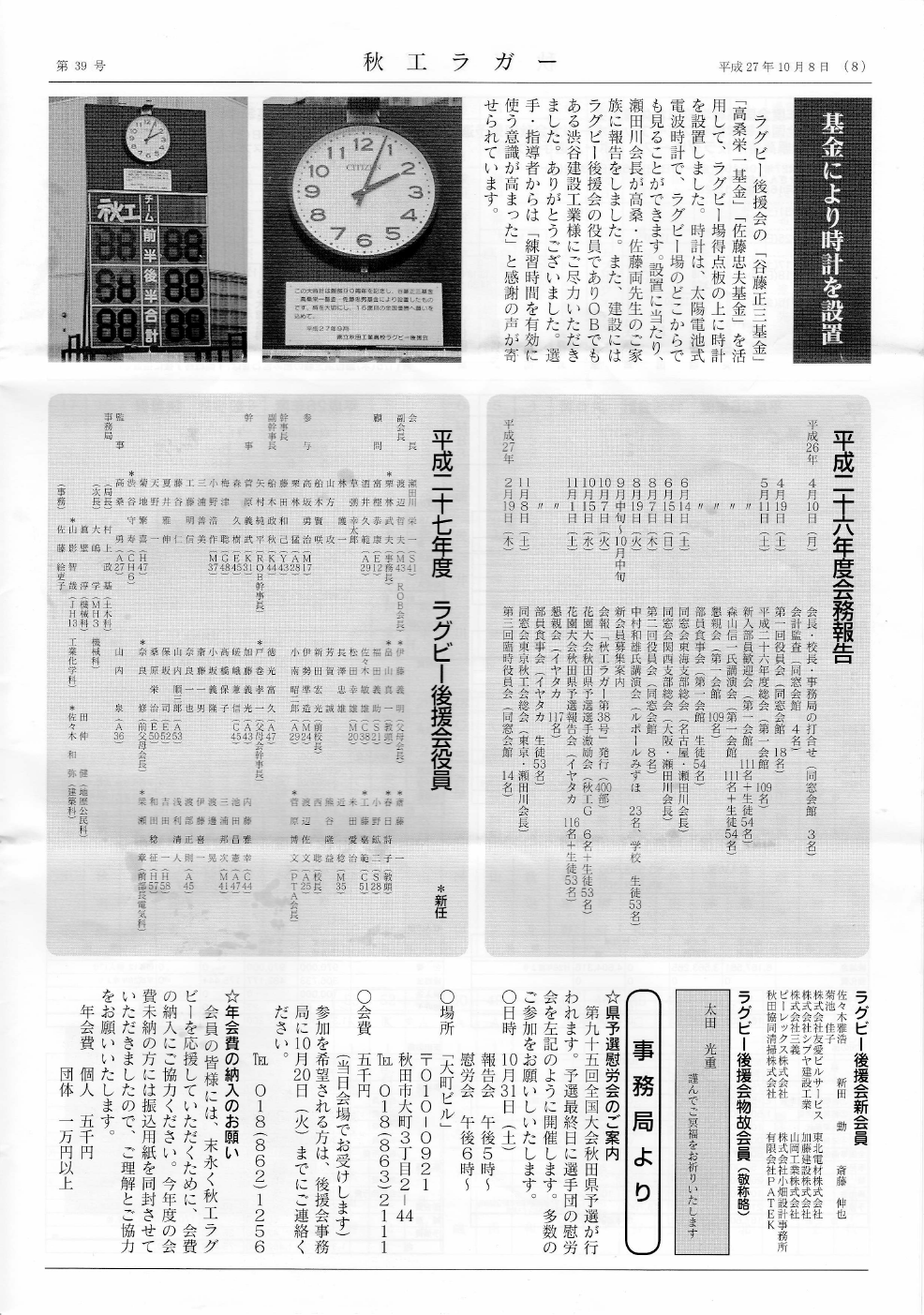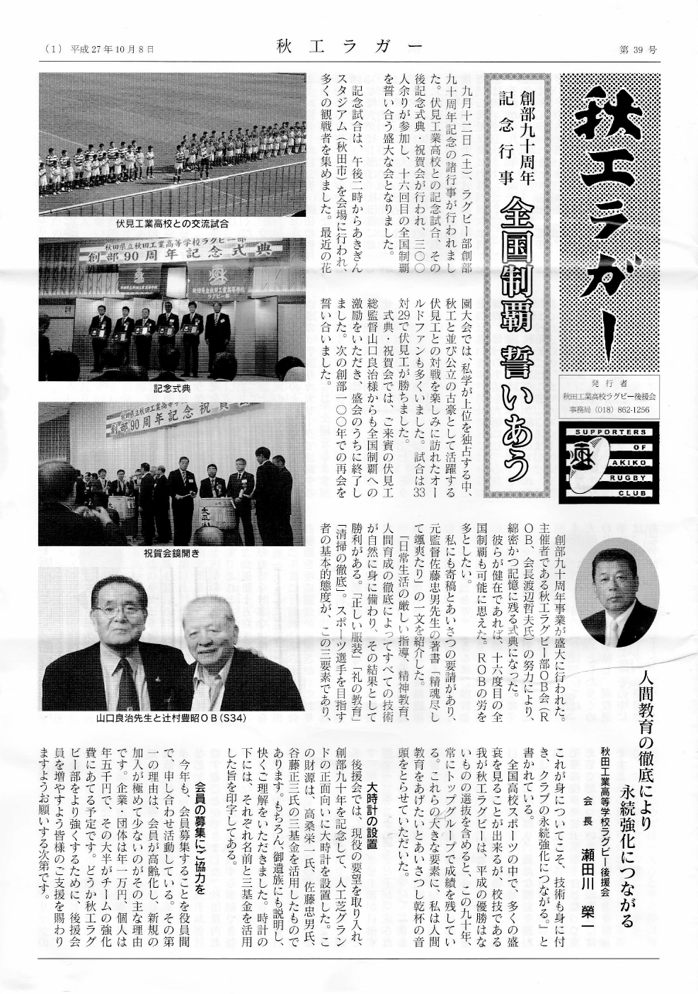 秋工ラクビー後援会の船木です。