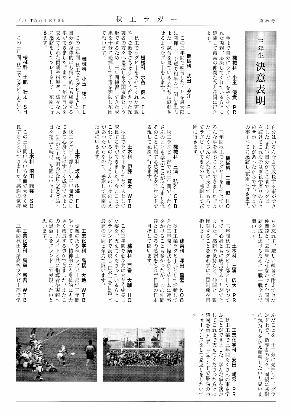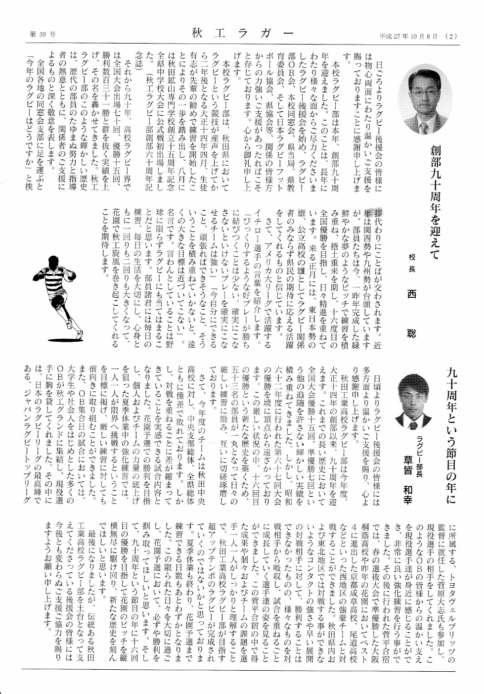 「秋工ラガー(第39号 平成27年10月)の送付 」を紹介させていただきます。