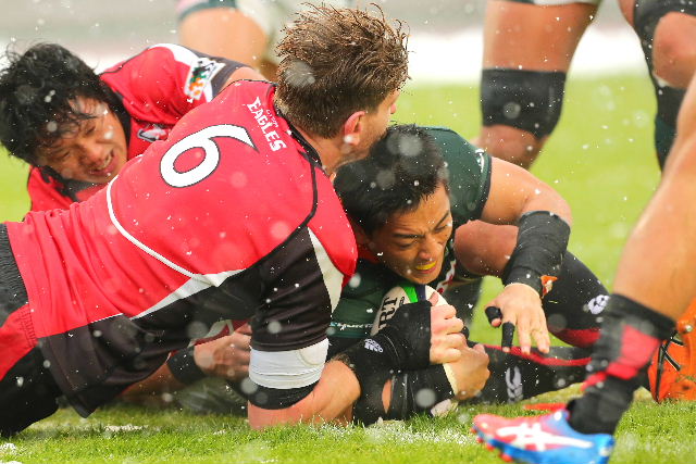 安藤泰洋、イェーツ、スティーブンが共に2トライを決め、48-17で雪辱を果たした。