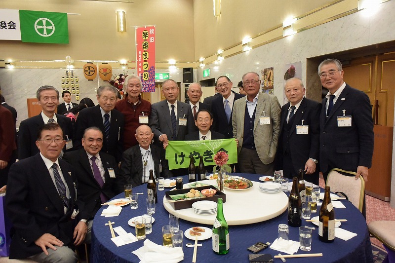 小林秋田市議会議長様の日本酒による乾杯に続き各テーブルごと情報交換が盛大に執り行われ、各高校ごと市長を囲み記念撮影、2時間半の有意義な時間があっという間に過ぎてしまいました、最後に三浦副会長による秋田市の更なる発展を祈念し皆さんと万歳三唱し閉会となりました。