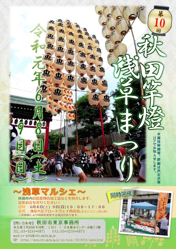 今年度も6月8日(土)・9日(日)に第10回となる 「秋田竿燈浅草まつり」ならびに「浅草マルシェ」を開催します。