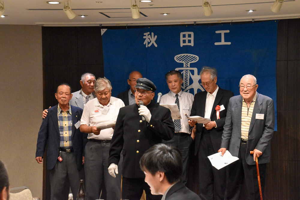 来賓者の校長先生から、母校の校長に赴任できたことは、大変光栄なことであり、大きな喜びでもあり、その責任の重大さにひしひしと感じている、後輩の為に全身全霊を傾け全力で支援していく、と力強い挨拶と9月27日に新校舎落成記念を計画していると報告されました。瀬田川ラグビー後援会長から、校長先生3年間の赴任中16回目の全国優勝を是非実現してもらいたいとの挨拶でした。近畿秋田県人会会長 加藤 俊勝氏が出席されました。最後全員でラグビー部歌を声高らかに歌い散会しました。