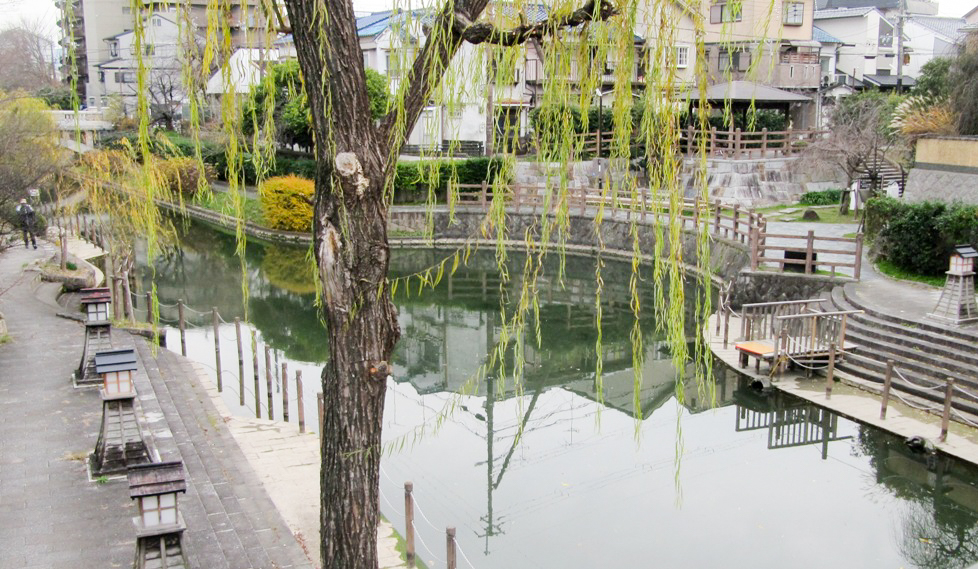 伏見港、浪曲では石松が三十石船で酒を勧めた話がある運河。