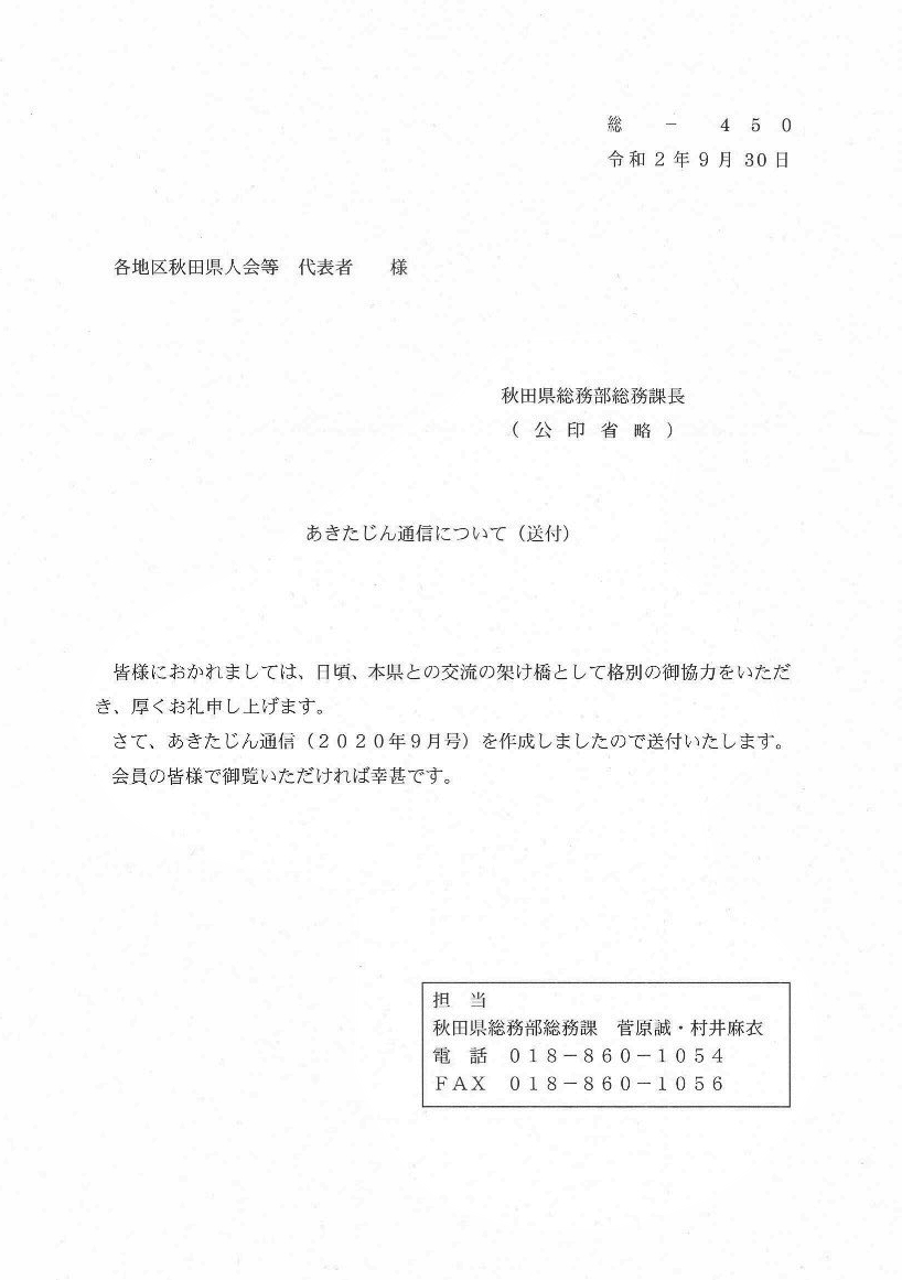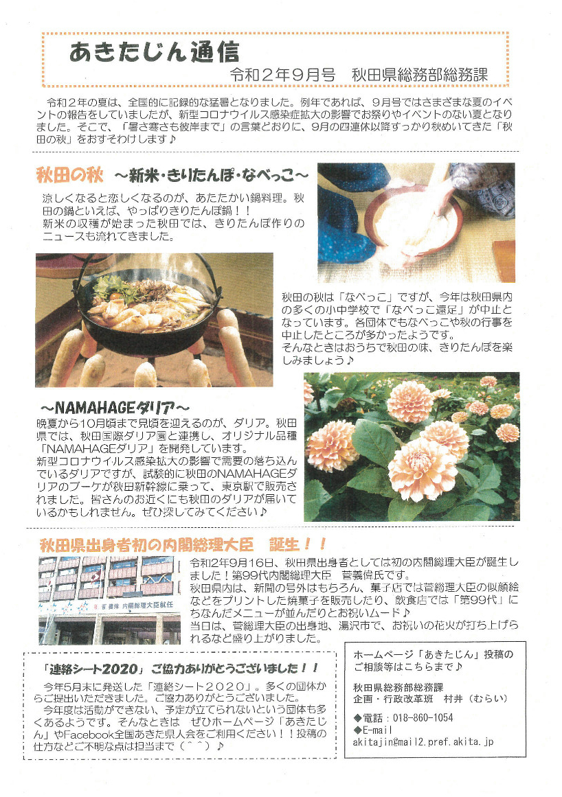 あきたじん通信(2020年9月号)