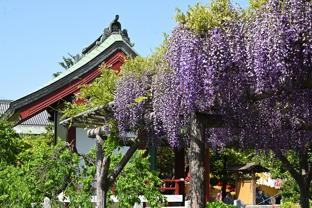 4月19日(月)好天気でしたので、足を延ばして、菅原道真公を奉祀する亀戸天神社にコロナの収束お願いをしてきました。 東京一の藤の名所として、淡い香りが多くの見学者に賑わいを見せていました。