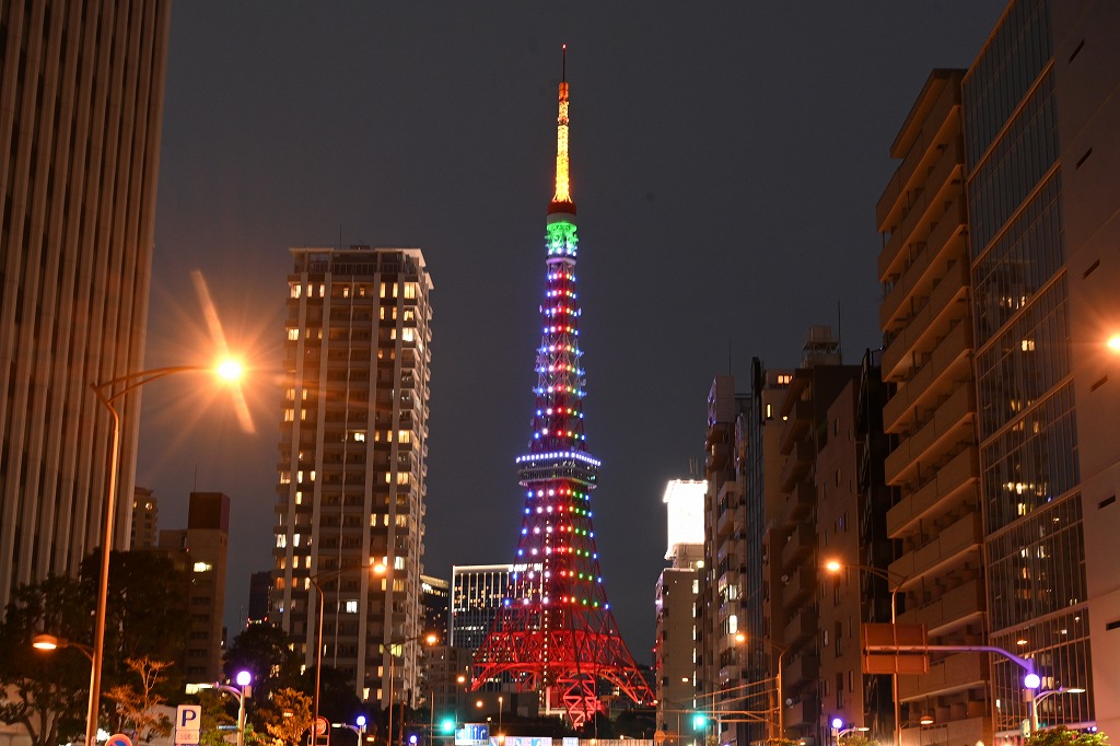 その後田町から東京タワーのオリンピック期間ライトアップの写真を撮ってきました。観光客とカメラマンが多数・幻想的なタワーを楽しんでいました。