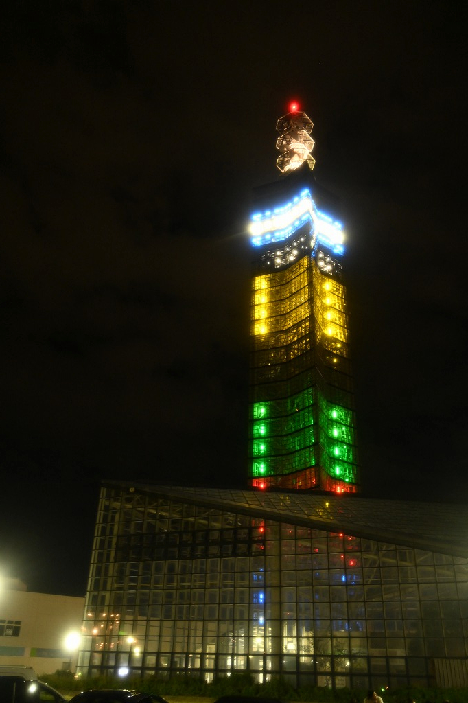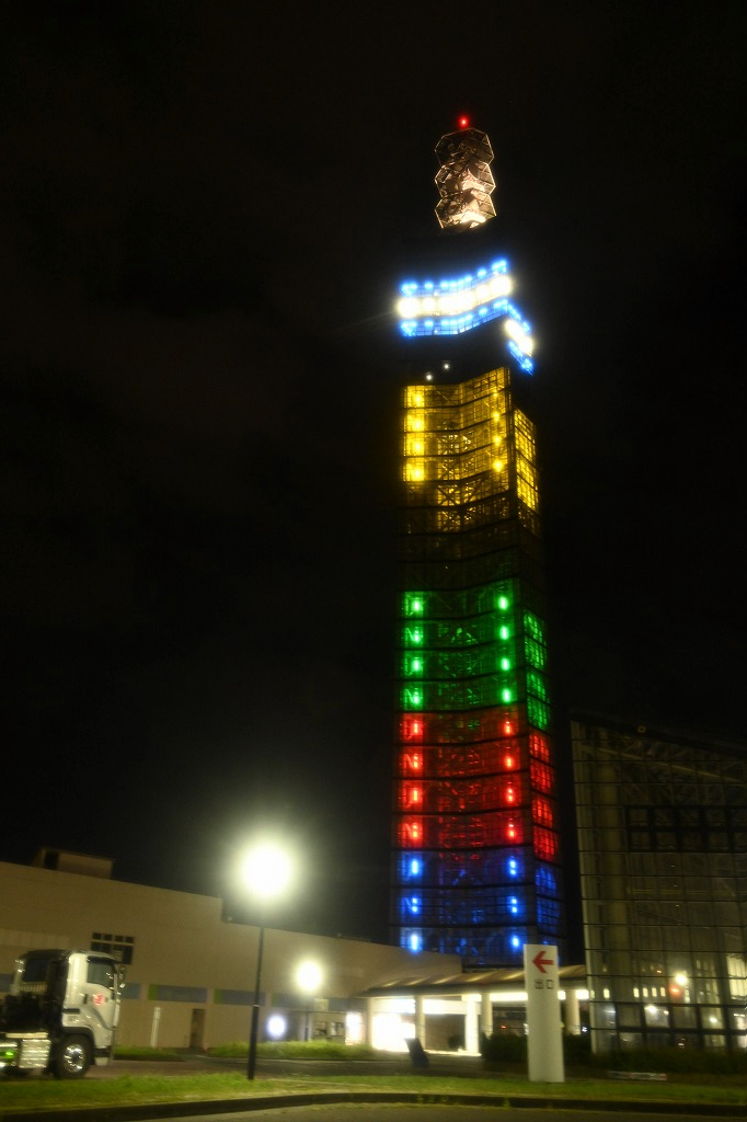 帰る途中土崎港のポートタワーセリオンがオリンピック開催日から31日までの間に色々な色が点灯されており、夕涼がてら多数の人が楽しんでおりました。