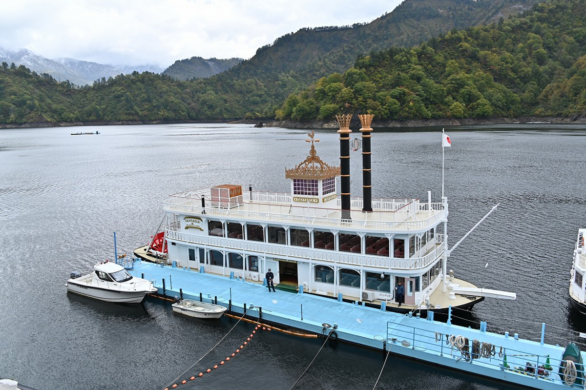関越小出インターから奥只見シルバーライン(ダム湖の工事用に掘られた。大型バスがギリギリ交差する狭くほとんトンネルです)を通り日本のフィヨルドと呼ばれている、奥只見ダム湖を遊覧船で30分周遊しました。紅葉が一週間早く残念でした。