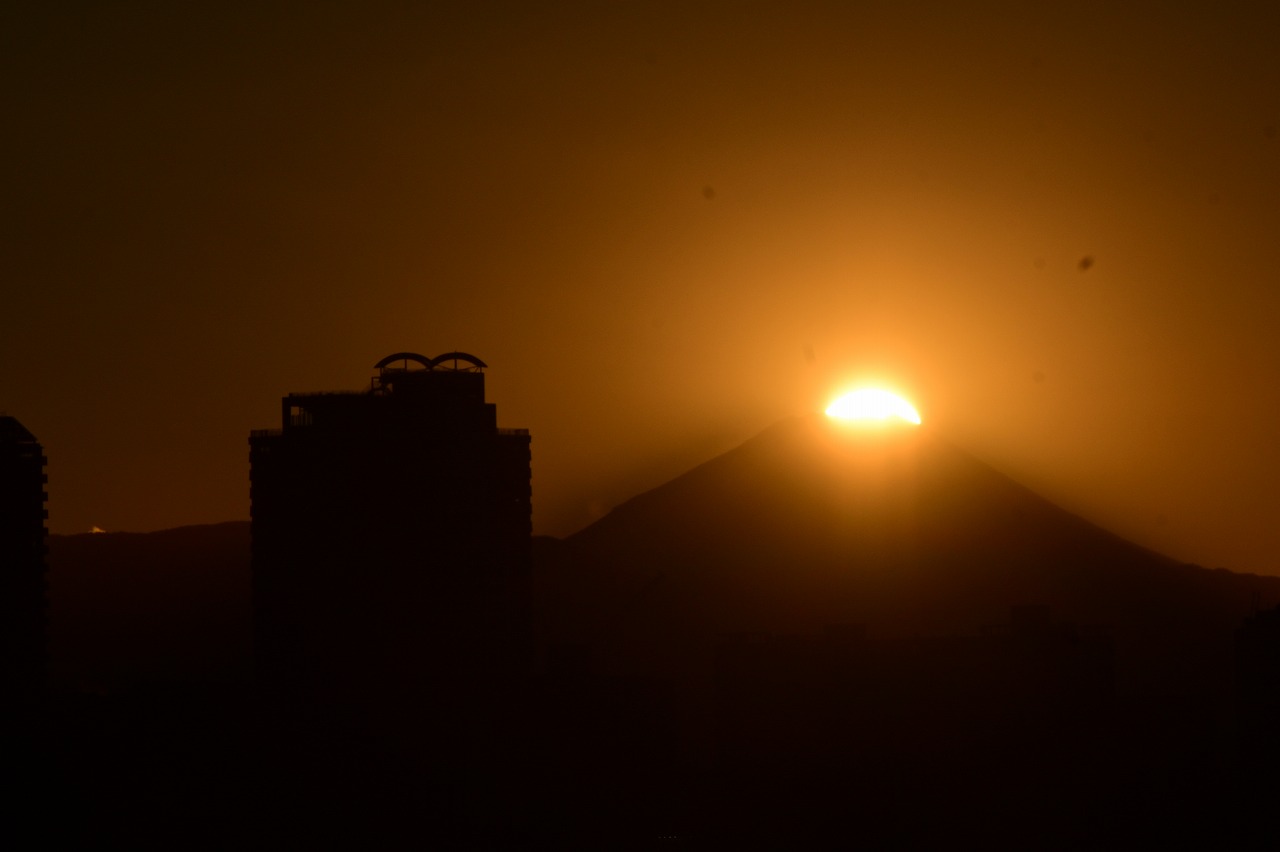 撮影場所に一時間前に行きましたが、前面のよいところはカメラマンに占有されており後方から三脚を高くして撮影しました。付近の住民方々が多数ダイヤモンド富士を楽しんでました。又女性のカメラマンが多かったです。