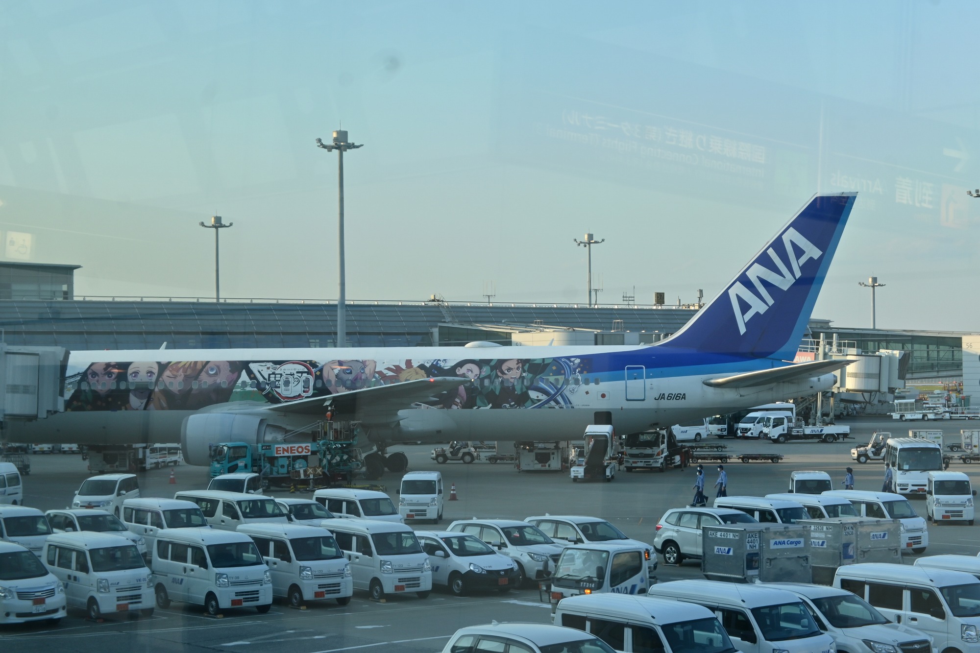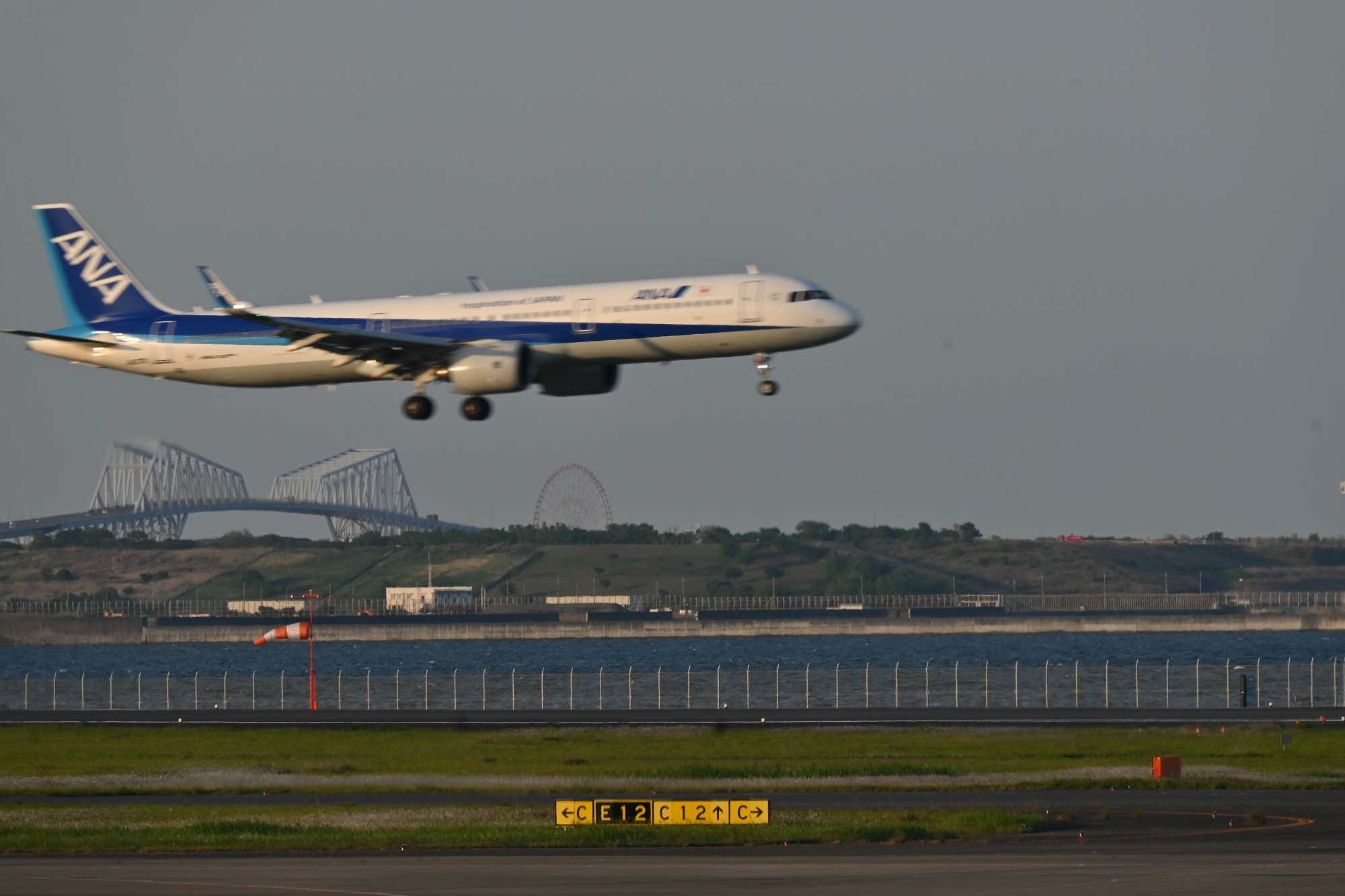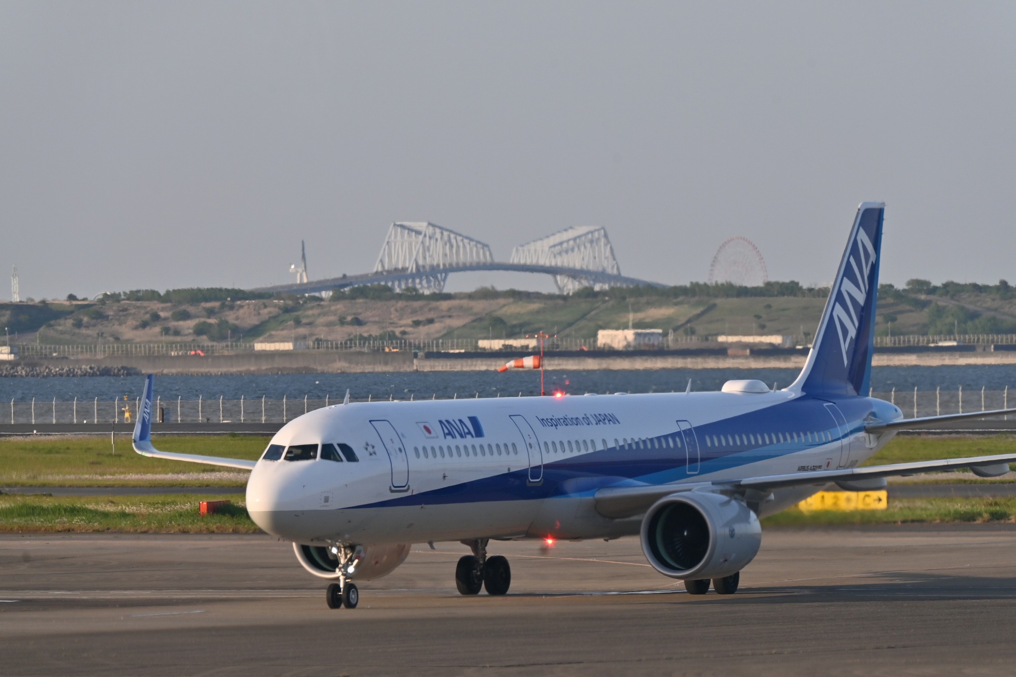 羽田第二ターミナル46番ゲートから、ゲートブリッジと飛行機を撮る事が出来ました。