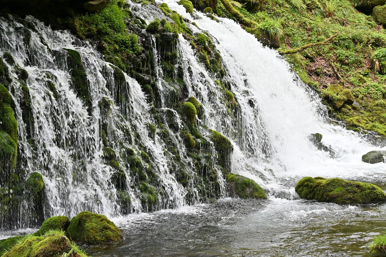 3日に友人二名と天気が良かったので、鳥海山ブルーラインの雪壁観光ドライブに行ったが、5合目が雪が降り通行止めとなり残念でした。近くの元滝伏流水を観光してきました。元滝までの用水路脇の遊歩道を15分程森林浴しながら、元滝伏流水から流れる渓流水と苔岩との渦も美しい光景でした。木が生い茂る岩肌一帯から湧き出る豊富な水量で流れ落ちる豪快滝に見ごたえがありました。神秘的な雰囲気を感られました。