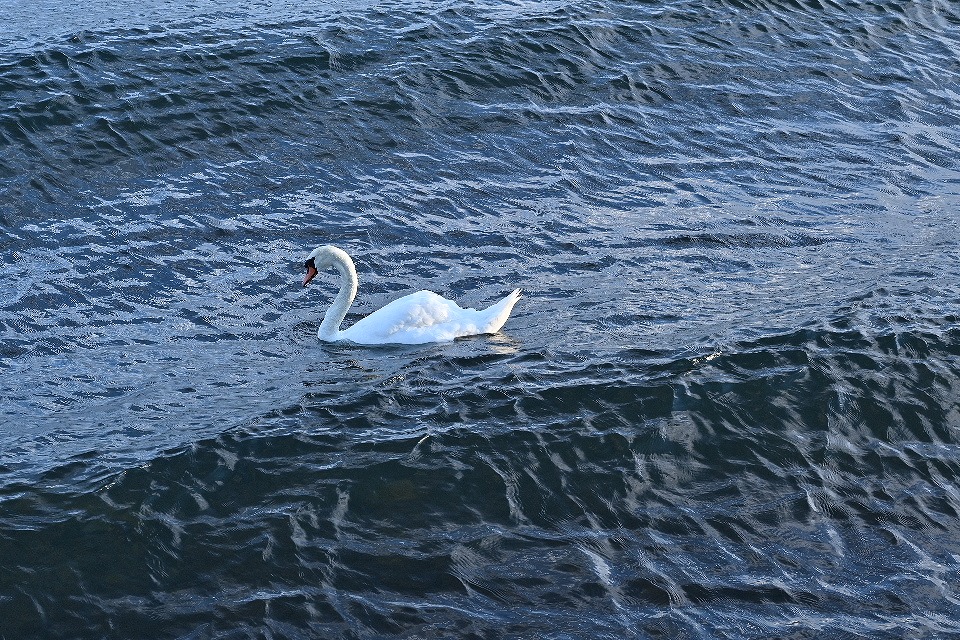 波に揺れる白鳥