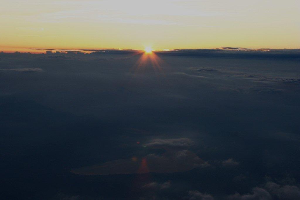 富士山山頂より・ご来光(下に山中湖)