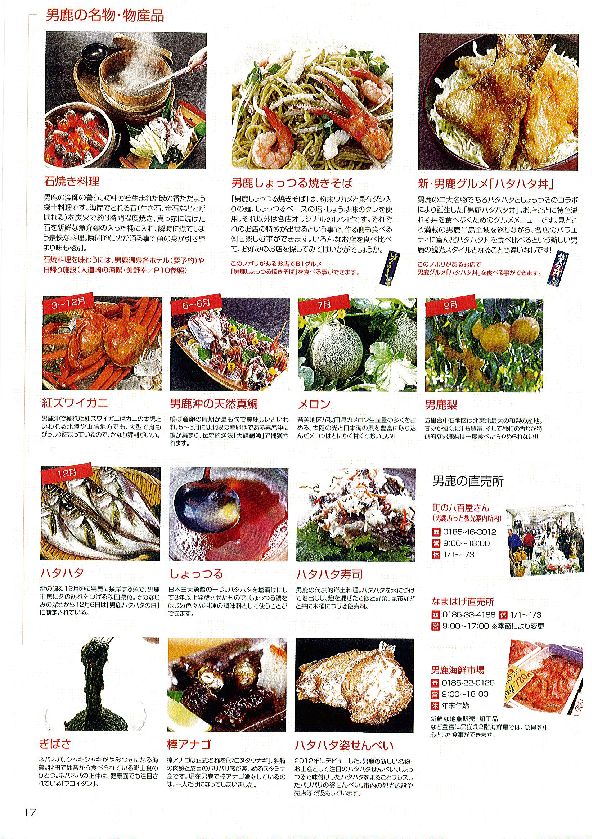 男鹿の食文化を代表するハタハタの「しょっつる」を使った新名物としてデビューーした 「男鹿のしょっつる焼きそば」、「全国やきそばサミット」や「B−1グランプリ」などに参加。 口に広がる磯の香りがすばらしい。