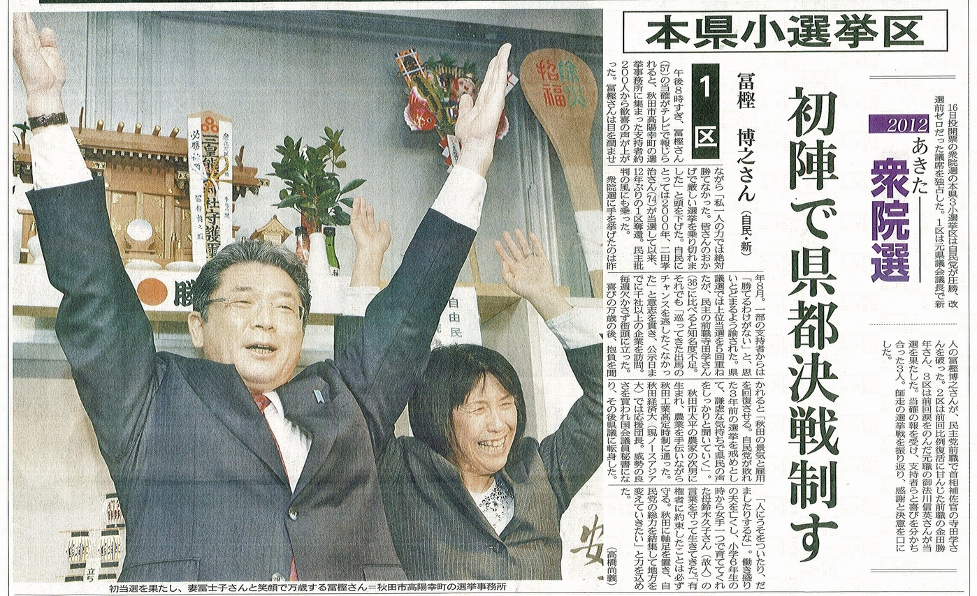 秋田1区富樫博之当選(秋工出)秋田魁新聞241217 (click->拡大)