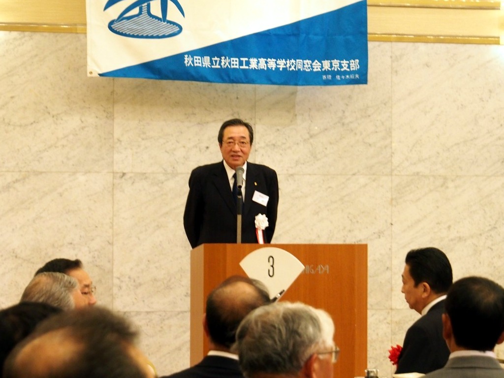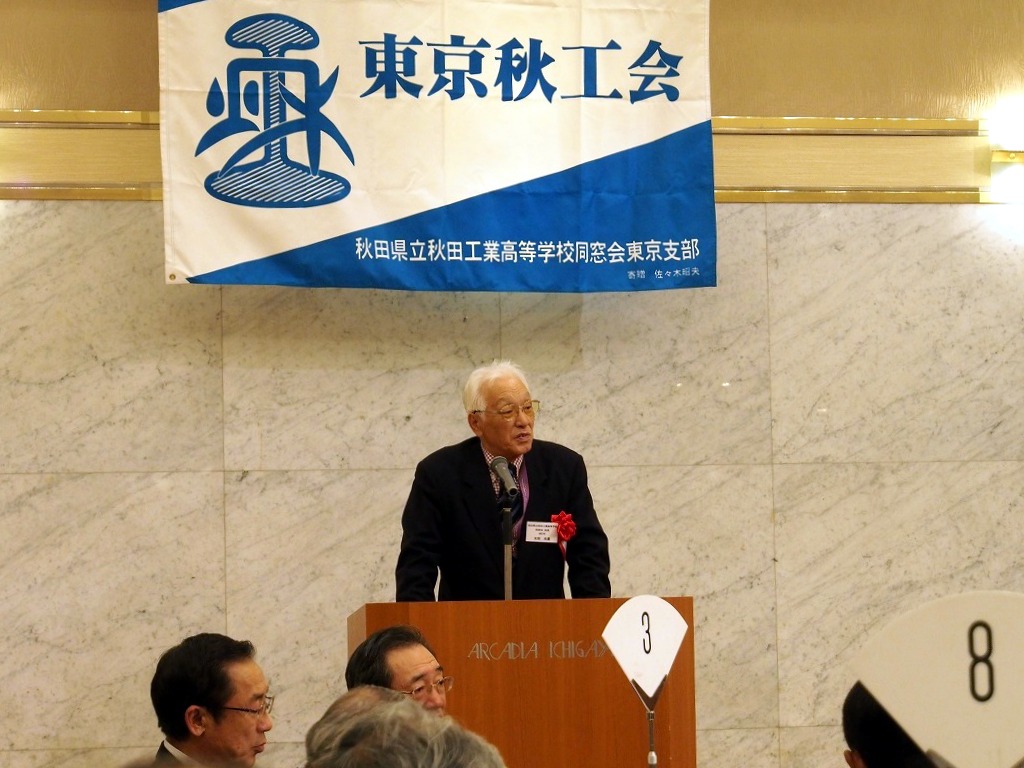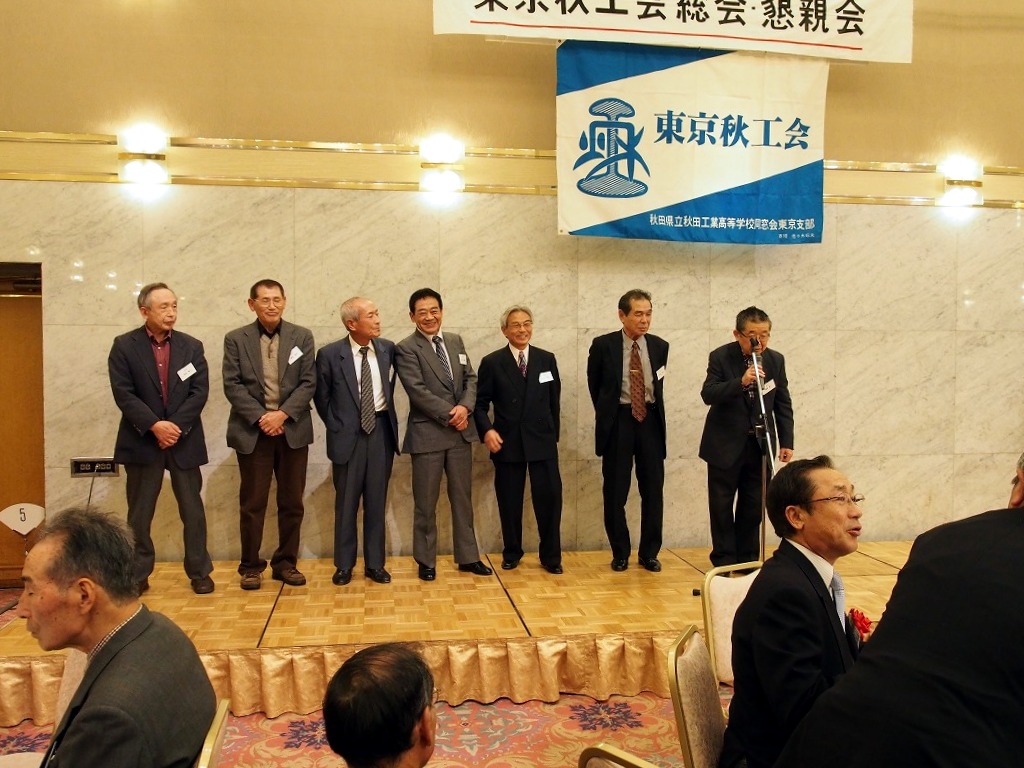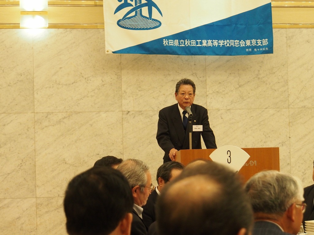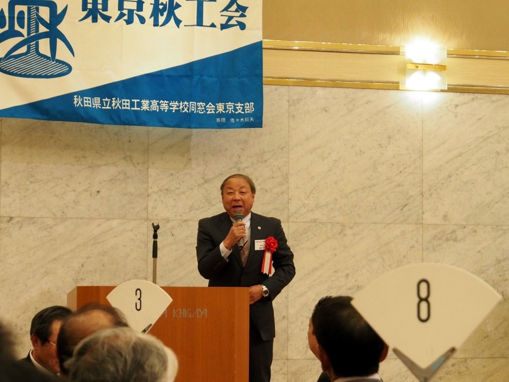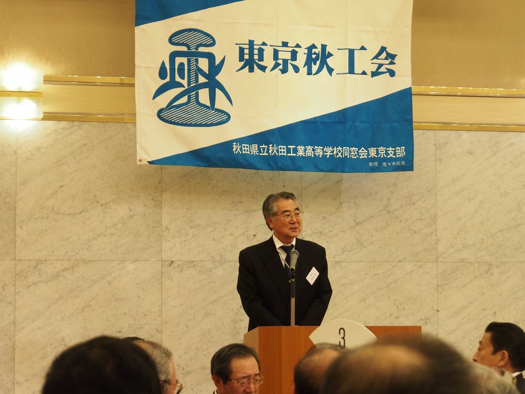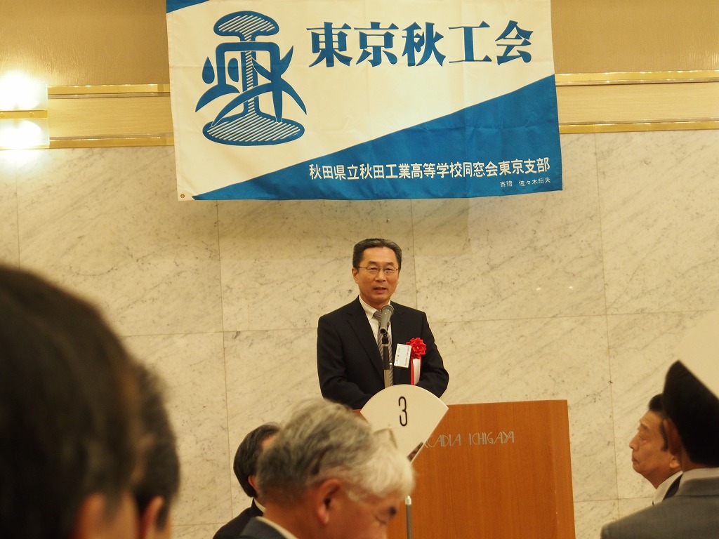懇親会1部では来賓の秋田県東京事務所所長鈴木長彦氏より、今年の夏秋工が秋田の竿燈に出た際のエピソードや、来年からスタートする秋田県の観光JRデスチネーションキャンペンの紹介がありました。