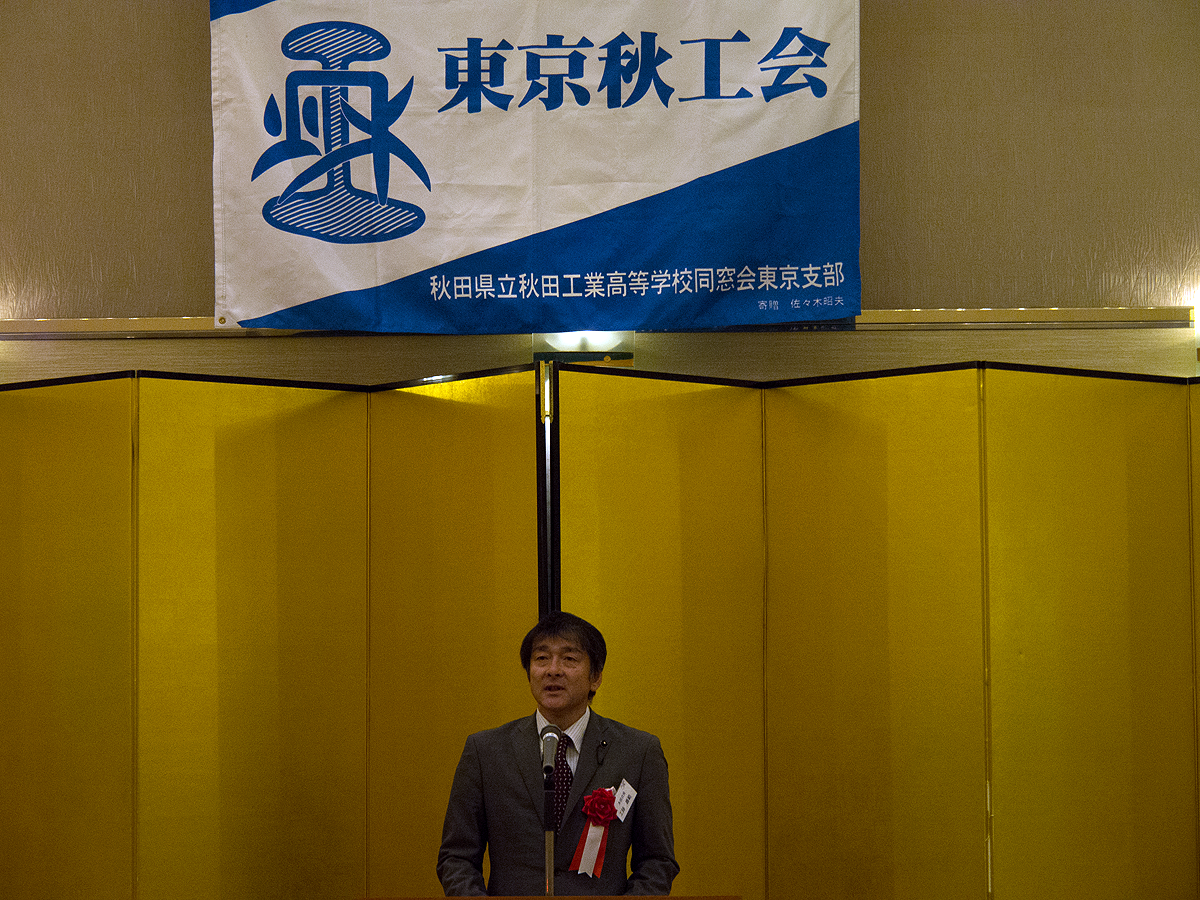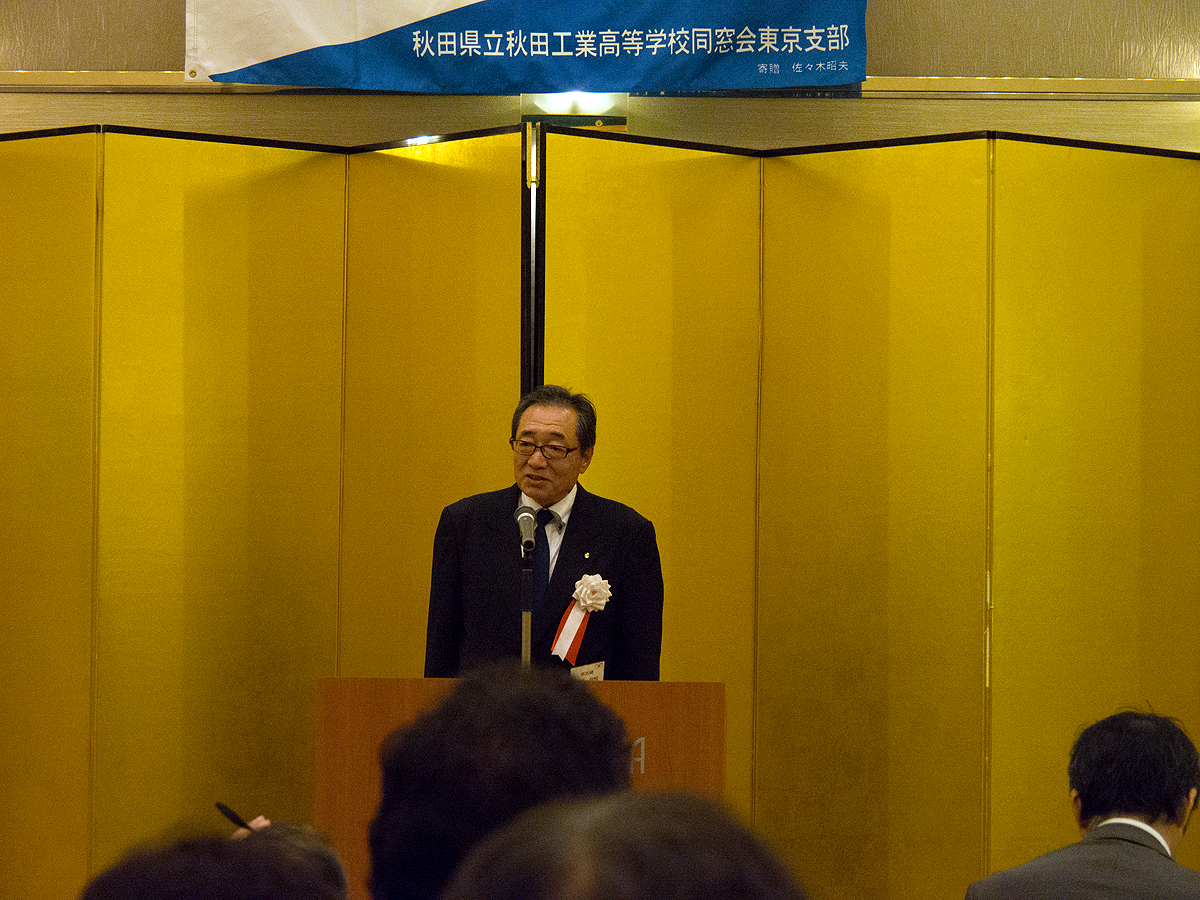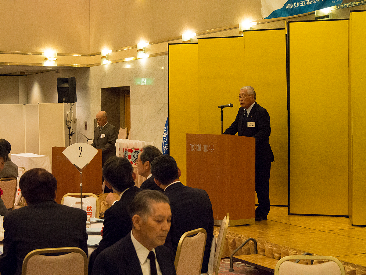 来賓挨拶では、富樫博之衆議院議員(S50M)から、以前秋工卒業式の懇親会に出席した秋田県知事から校舎の移転話があった際、太田前会長とのエピソードについて触れられました。(*太田前会長は校舎新築にあたり金砂の地に留まることを強く進言したと聞いております。)