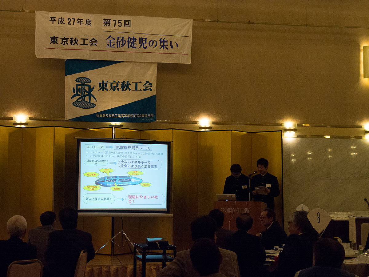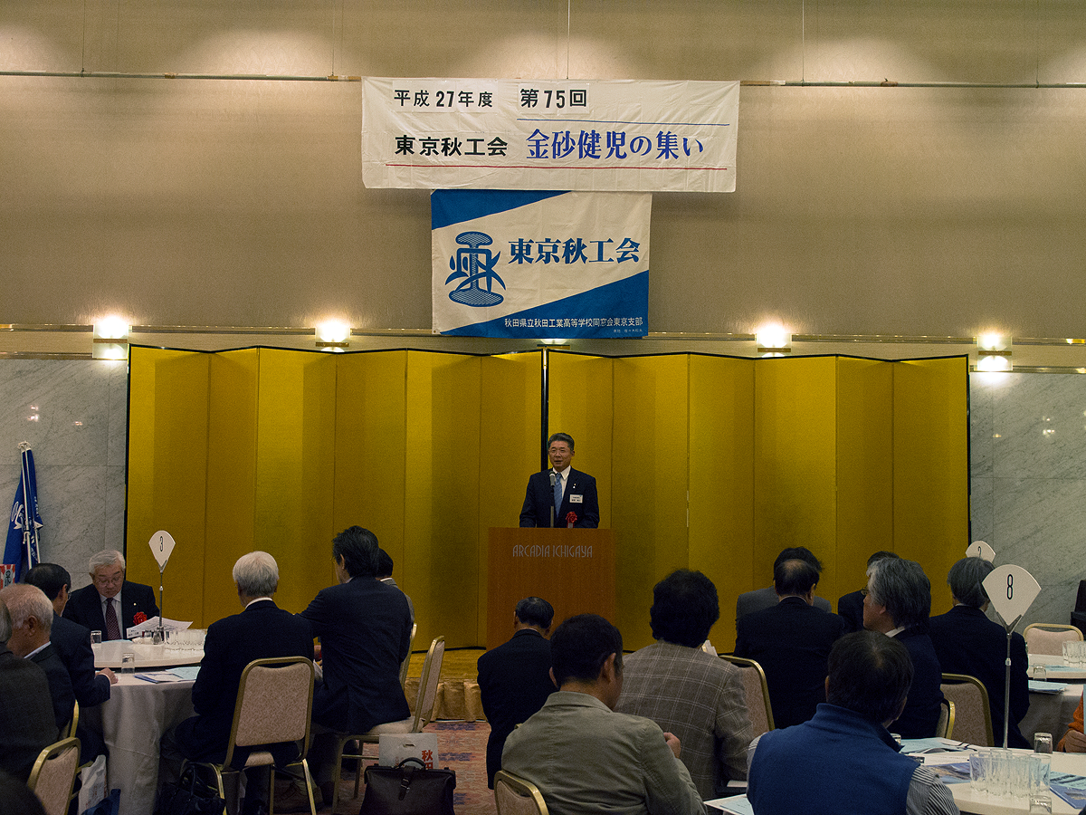 平成27年度の東京秋工会総会・懇親会は11月7日(土)午後12時半からアルカディア市ヶ谷(私学会館)に於いて、来賓18名、会員他100名が出席し盛大に開催されました。今回は東京秋工会創立75周年記念総会になります。