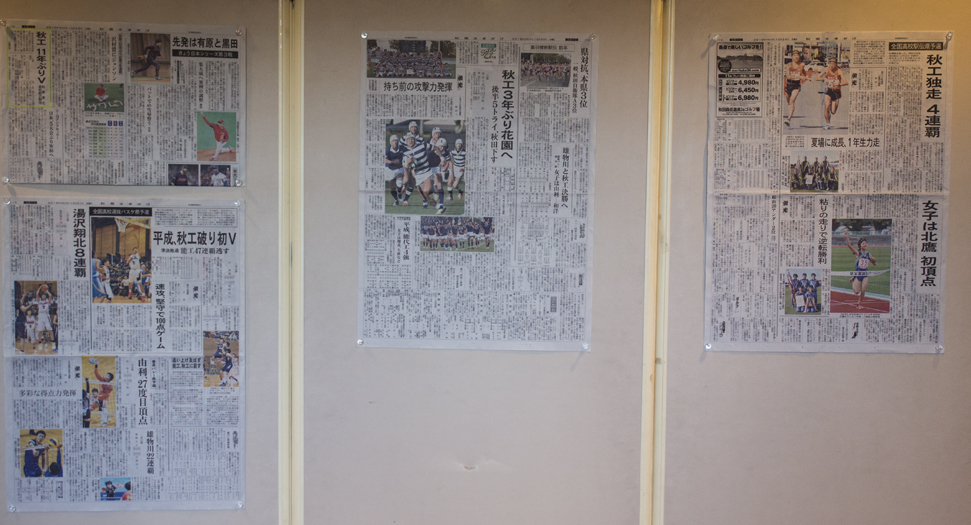 「今年ラグビーが66回目3年ぶりの花園出場を決めた。駅伝が4年連続の全国大会出場。バスケット、バレー、サッカーも準決勝まで駒を進めた。リオデジャネイロ五輪にも秋工卒の佐々木悟選手が男子マラソンに出場。連日秋田魁新報に秋工の記事が掲載された。本日新聞を持参した。スポーツのみでなく、高校生ものづくりコンテストでも活躍した。