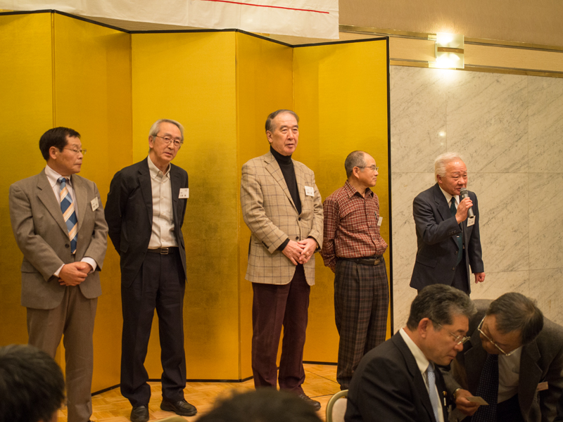 (初参加者紹介続き)マイクを持っている人の左隣から、小坂鐵男(S33C)、松井武明(S37C・仙台 身長の高い人)、佐藤忠(S34S・秋田)の皆さん。(左端は司会の遠藤さん)