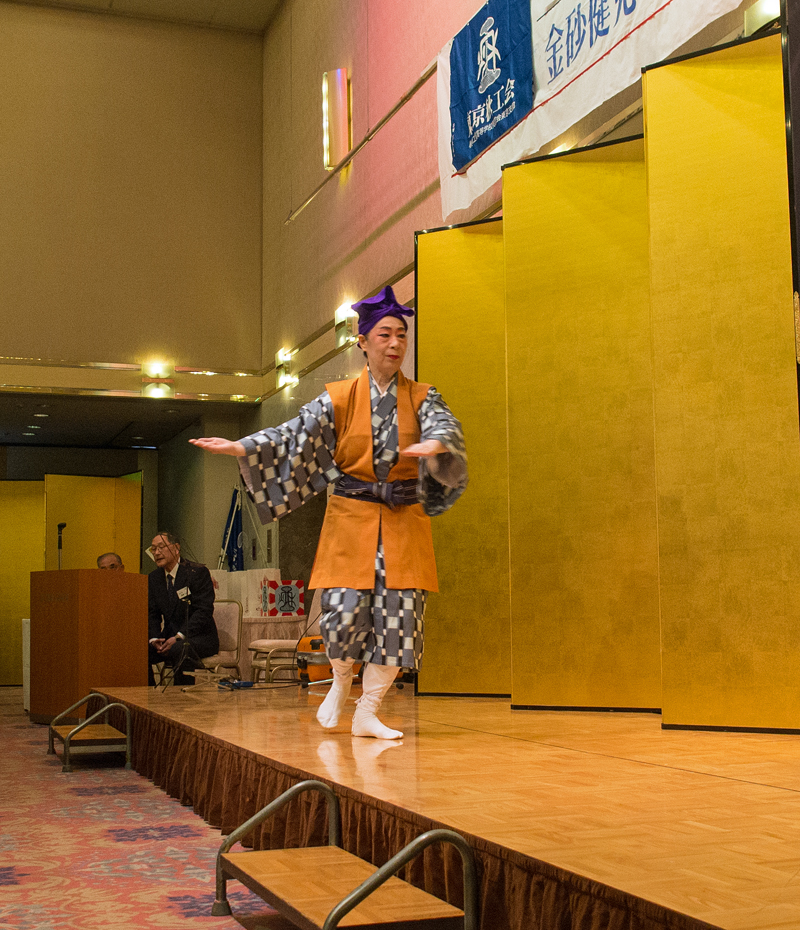今回初参加者8名の自己紹介の後、余興に入り琉球舞踊、アニメソング、詩吟同好会、民謡同好会などがそれぞれ踊りや歌を披露しました。ギターリスト 吉田 穣(H 9 J )氏が初めて参加されました。抽選会があり秋田のお酒など20名に景品が渡されました。
